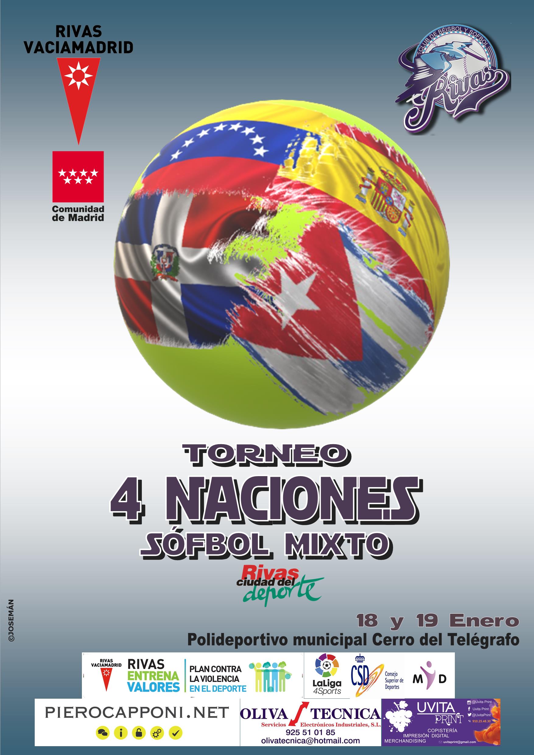 A continuación se celebrará el I Torneo 4 naciones de sófbol mixto, en el que se enfrentarán equipos de Cuba, Dominicana, Venezuela, España y resto de países presentes en nuestros equipos.